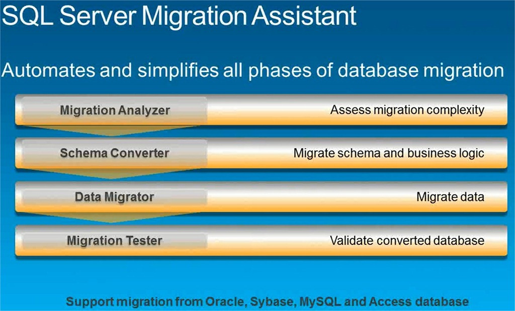 SQL Server Migration Assistant for MySQL is the newest migration toolkit, others include Oracle, Sybase, Access, and an analyzer for PowerBuilder. The toolkits were designed to tackle the complex manual process customer’s deal with when migrating databases. In using the SQL Server Migration Assistants, customers and partners reduce the manual effort; as a result the time, cost and risks associated with migrating are significantly reduced. Our recent SSMA survey showed that 94% of SSMA downloader’s would recommend the tool to others. All SSMA toolkits are available for free download.