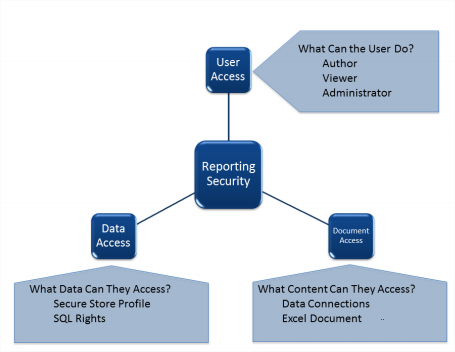 The security for Reporting is distinct from Project Web application security, because Report viewers may not be part of PWA Users.