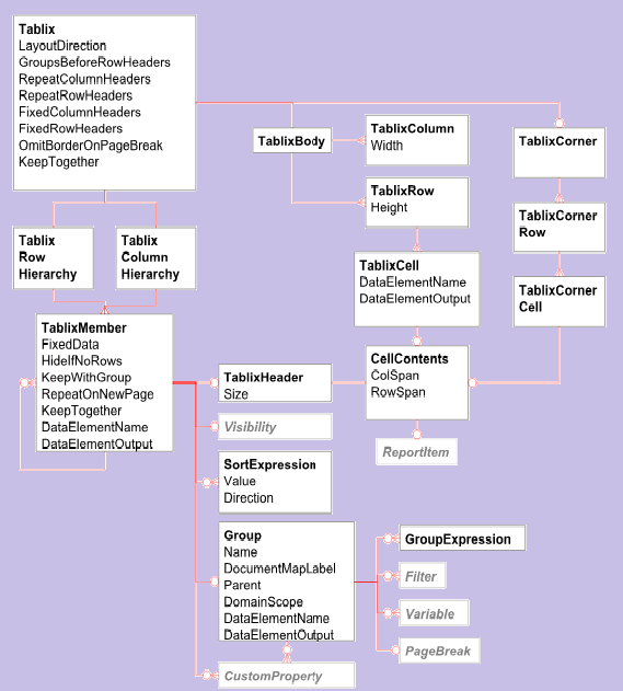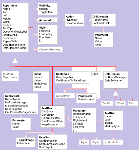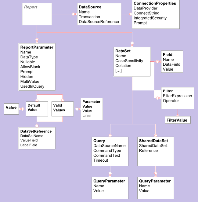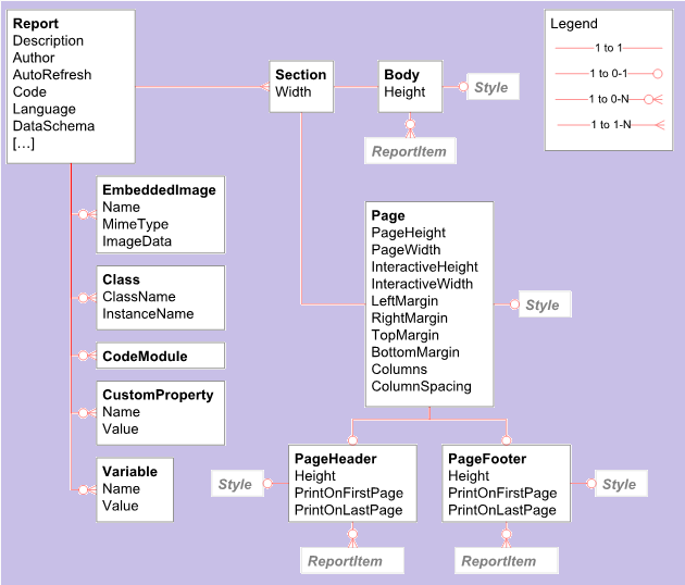 Following section contains diagrams that illustrate the schema of the Report Definition Language