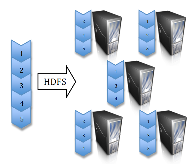 HDFS manages storage on the cluster by breaking incoming files into pieces, called “blocks,” and storing each of the blocks redundantly across the pool of servers.