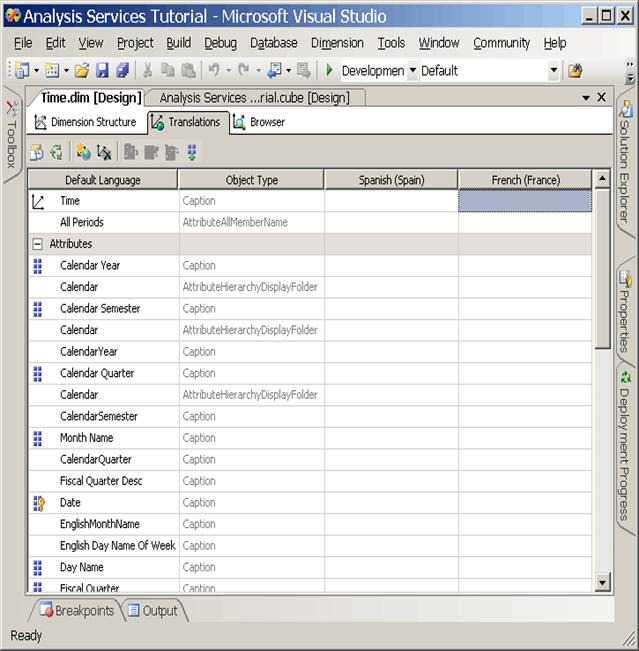 1.Open Dimension Designer for the Time dimension, and then click the Translations tab.