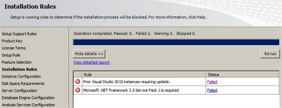 selection. To continue, install the required Visual Studio 2010 Service Pack 1 SQL