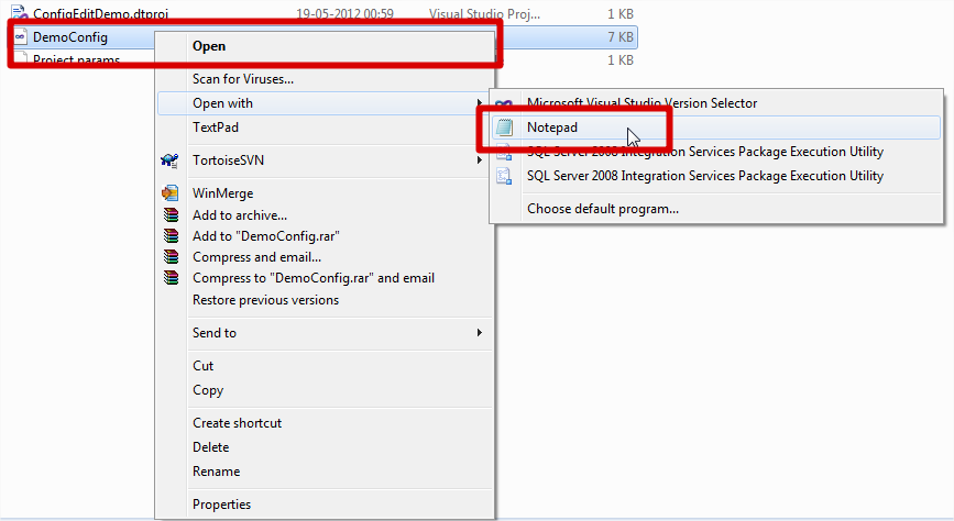 So viewing selecting code into Note pad