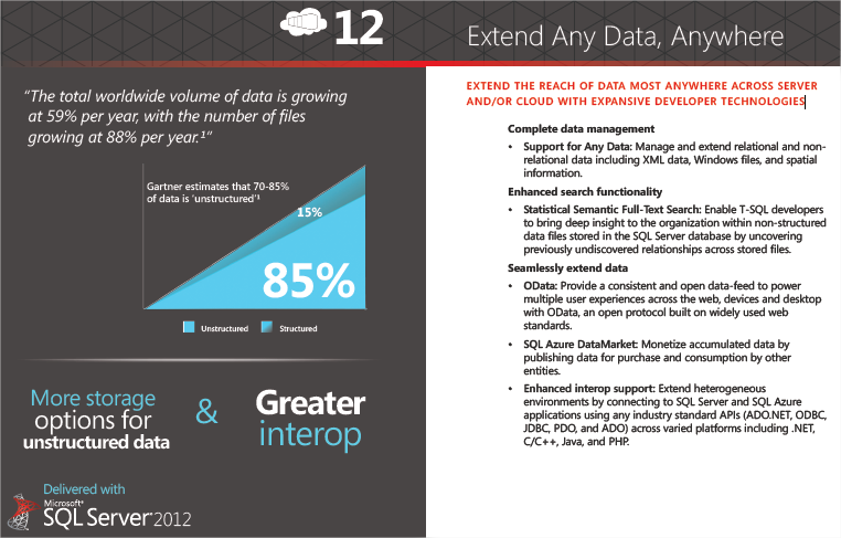 We all know that SQL Server 2012 will help extend organizations beyond the database with a cloud-ready information platform that delivers mission critical confidence, breakthrough insight, and cloud on your terms.