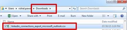 For example, file which I have downloaded is in location – C:\Users\Downloads\linkedin_connections_export_microsoft_outlook.csv