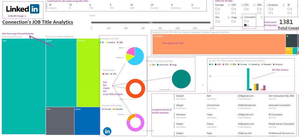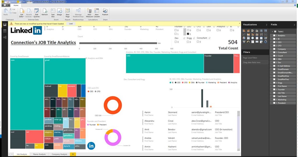 In this article you are going to learn how easily you can use Power BI to analyze all your LinkedIn connection easily, fast and do some immediate action.