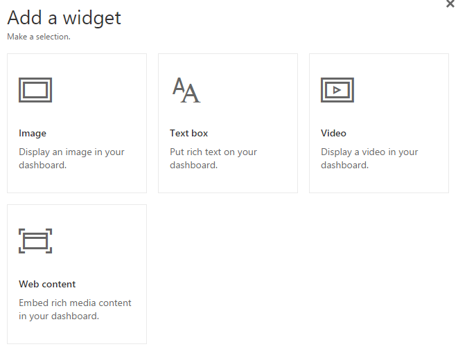 Simply go into your Power BI dashboard and click on the Add Widget to get the above picture.