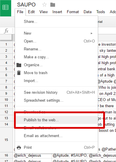 All twittes related to #SAUPO hashtag get stored into google sheet in following format