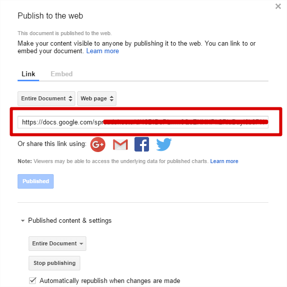 Publish this Google sheet as Web, Get URL which will be source for Power BI