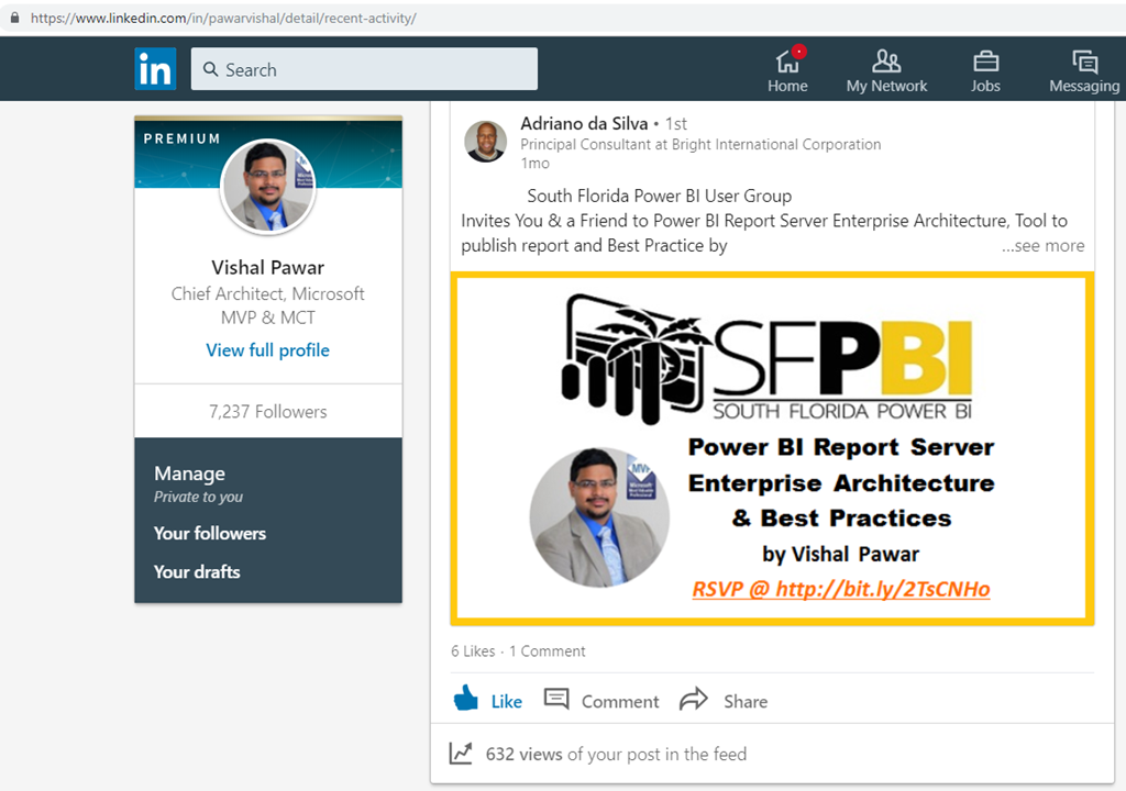 The group’s scope also include Power BI integration with other technologies; such as, Artificial Intelligence, Machine Learning, Cloud and Big Data.