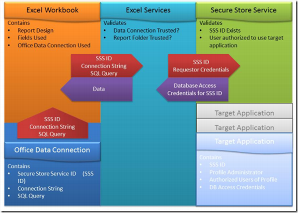 Office Data Connections: Office Data Connections (ODC) are used to store the connection information, the SQL Query and the Secure Store Target Application ID. External ODCs are used to allow you to manage data connection and query information externally to the reports that consume the data. These two components together are the deliverables from the report author.